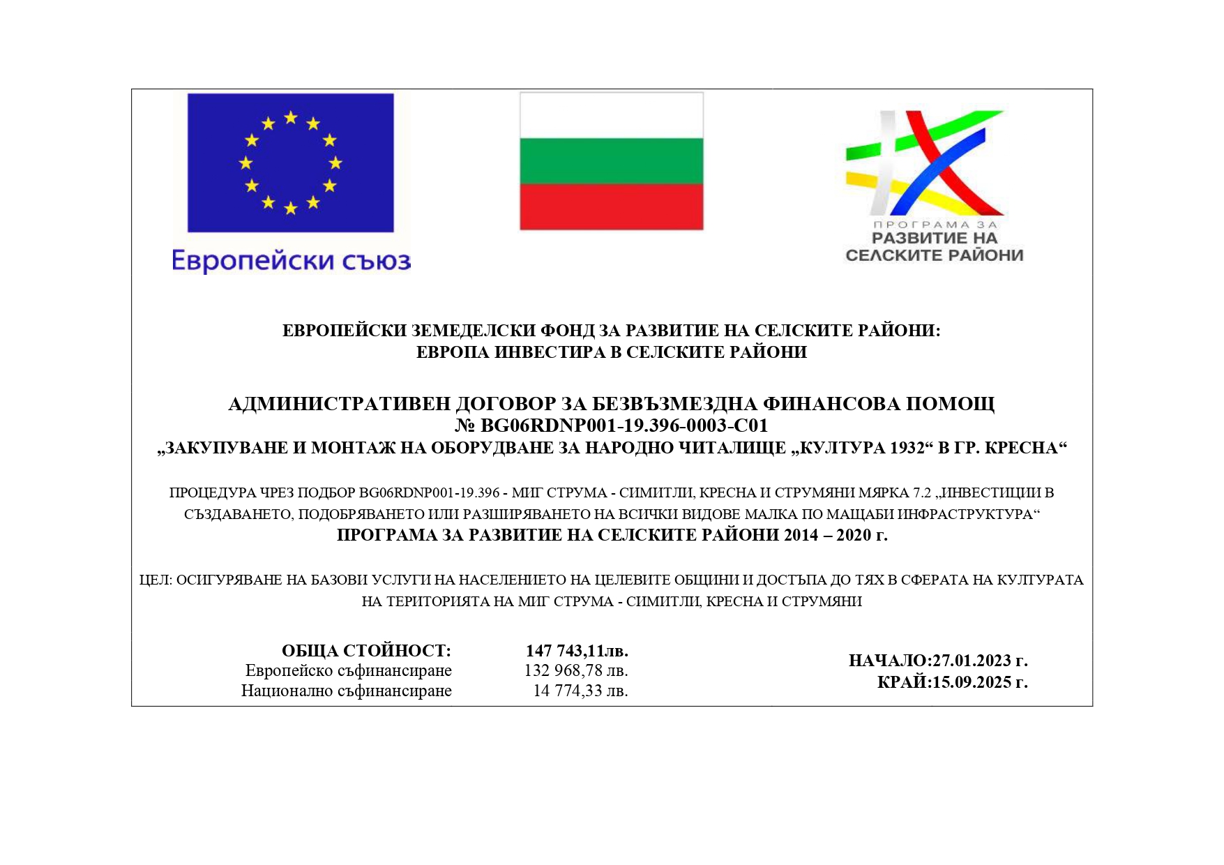 ПРОГРАМА ЗА РАЗВИТИЕ НА СЕЛСКИТЕ РАЙОНИ 2014 – 2020 г.